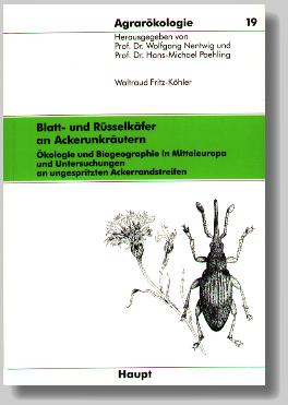 Fritz-Köhler, W. (1996): Blatt- und Rüsselkäfer an Ackerunkräutern. Ökologie und Biogeographie in Mitteleuropa und Untersuchungen an ungespritzten Ackerrandstreifen. - 138 S., 18 Abb., 13 Tab., Bern / Stuttgart / Wien (P. Haupt Verlag: Agrarökologie, Schriftenreihe monographischer Abhandlungen zur landwirtschaftlichen Ökologie Bd. 19). Fritz-Köhler, W. (1996): Chrysomelid and curculionid beetles associated with arable weeds, their ecology and biogeography in Central Europe, and a study on crop margins not treated with agrochemicals. - Agrarökologie (Bern) 19, 1-138. [german] Bezug / Purchase: